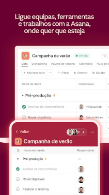 A Asana otimiza a gestão de projetos e tarefas, seja para sua equipe ou trabalho individual. Ela organiza o trabalho de forma clara, do detalhe ao panorama geral, para que todos saibam o que fazer, quando e como, impulsionando a produtividade e a colaboração.
